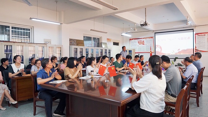 担育人使命,亮党员承诺。我是党员我承诺:潜心治学,甘当人梯,以人格魅力引导学生心灵,以学术造诣开启学生智慧之门,时刻铭记立德树人初心,牢记为党育人、为国育才使命……全体党员积极参加,庄严签名。学校党委书记陈国龙全程参加了“我是党员我承诺”活动,他鼓励党员要争做新时代“四有”好老师,把爱党爱国热情转化为推动工作的实际行动,真正做到“学高为师,身正为范”。