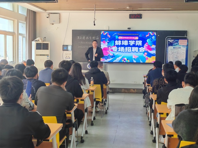 此次宣讲会学院和公司都高度重视,安徽凌坤智能科技有限公司董事长、蚌埠学院客座教授李明亲自带队,公司办公室主任曹静,软件开发部部长张庆文,科技市场部总监戈永达,科技采购部部长詹明行,公司员工以及学院23届毕业生周言程和周云出席。计算机与信息工程学院院长朱洪浩、副院长李现伟、毕业班辅导员参加了专场招聘会。
