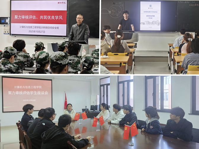 为全面贯彻落实学校本科教育教学审核评估工作要求,进一步提升全院师生对评估工作的认知度、参与度和配合度,计算机与信息工程学院于近日分层分类组织开展本科教育教学审核评估专题学习活动,覆盖全院教职工和学生群体,确保评估要求传达到每一位师生。 学院先后召开了教职工专题学习会、学生骨干座谈会,组织开展教师磨课、研课活动,各班级同步组织主题班会。在系列学习活动中,学院领导班子、各教研室主任、专任教师、辅导员以及同学们系统学习了审核评估的核心要义、总体目标和评估指标体系等关键内容,深入理解了本科教育教学审核评估对学院办学定位、人才培养质量和教学管理水平全面检验的意义;磨课、研课中,授课教师对课堂教学进行深度雕琢,参与教师聚焦课例研讨,通过对照反思,汲取经验,实现共同学习与成长;辅导员召开学风建设主题班会,组织全院学生系统学习迎评促建知识,加强学风建设和宿舍安全文明教育。