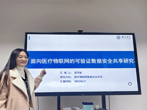 9月17日,计算机与信息工程学院博士聂雪丽在我校博士学术沙龙上汇报了其最新研究成果——“面向医疗物联网的可验证数据安全共享研究”,相关研究为解决医疗数据在共享过程中的安全、隐私与可信问题提供了新思路与新方法。